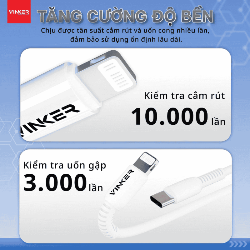 Tính năng cơ bản của cáp sạc nhanh : bền bỉ, mềm mại , chống rối và chống đứt gãy