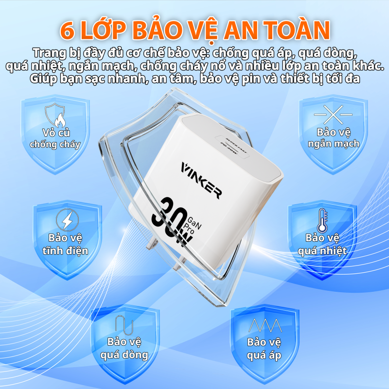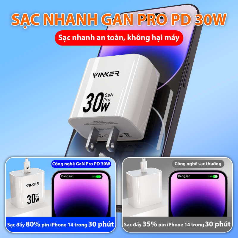 Sử dụng công nghệ GaN tiên tiến: giúp củ sạc ít tỏa nhiệt hơn, nhẹ hơn, sạc nhanh hơn, ổn định hơn, an toàn hơn