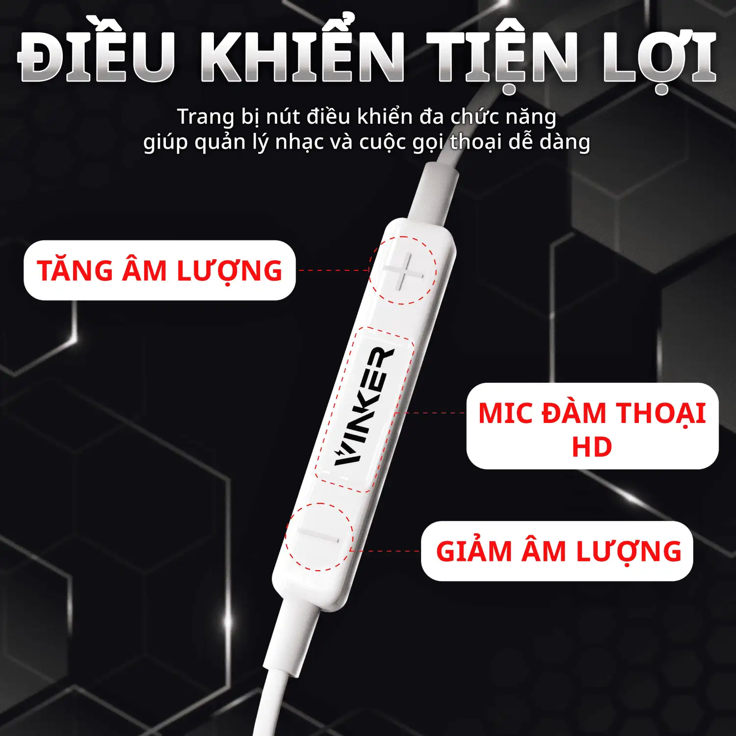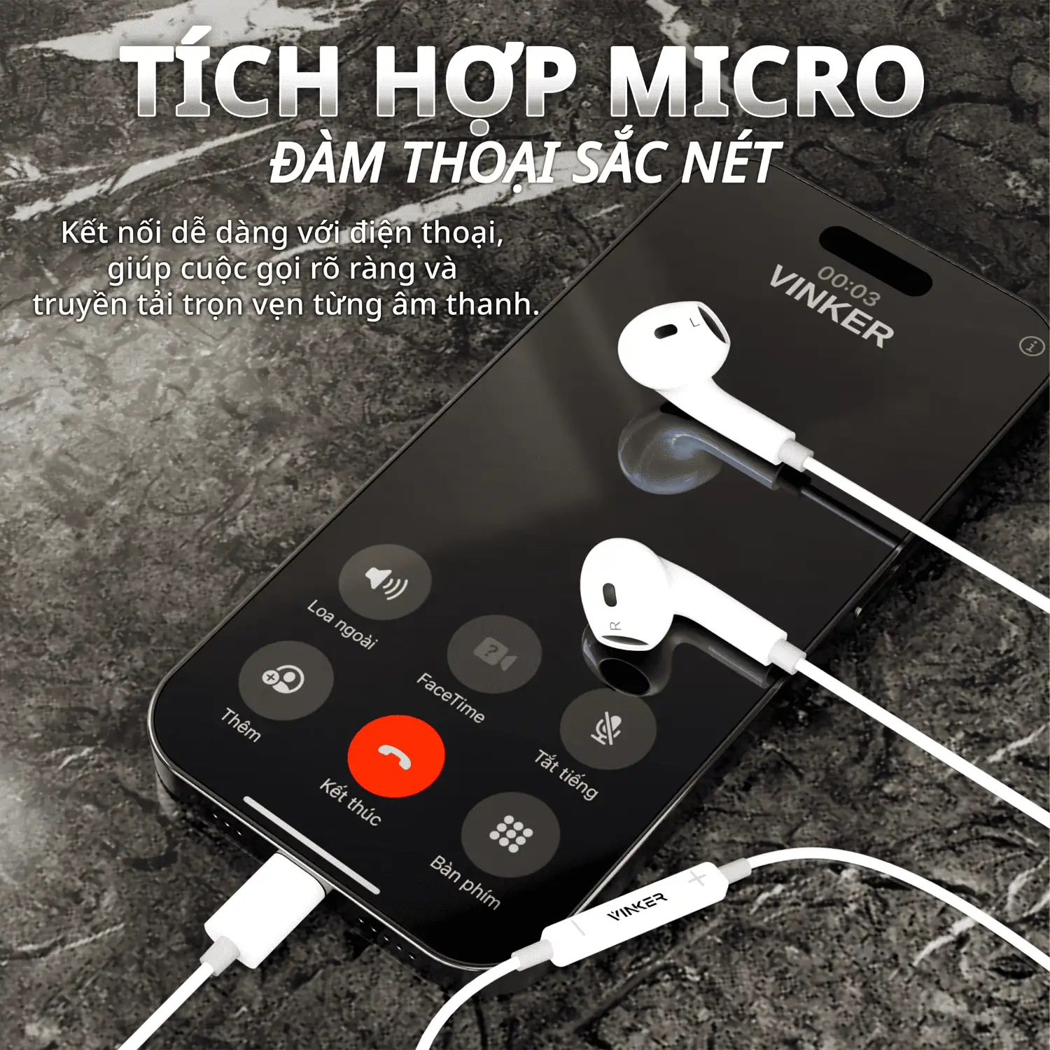 Tích hợp micro và bộ điều khiển ngay trên dây, tương thích linh hoạt – 3 loại cổng : 3.5mm, Type -C, Lightning.