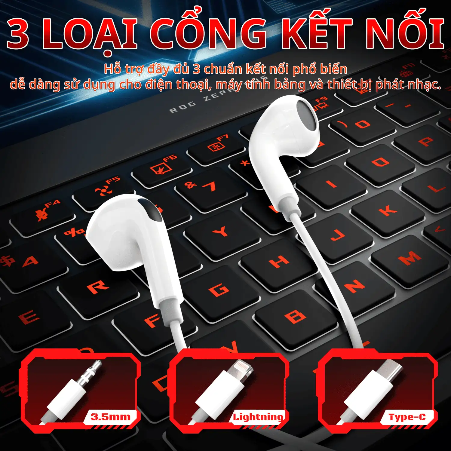 Tích hợp micro và bộ điều khiển ngay trên dây, tương thích linh hoạt – 3 loại cổng : 3.5mm, Type -C, Lightning.